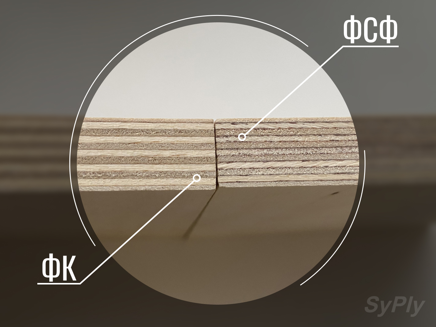 · ФСФ: срез темнее, с хорошо заметными темно-коричневыми или красноватыми прослойками клея между слоями шпона.
